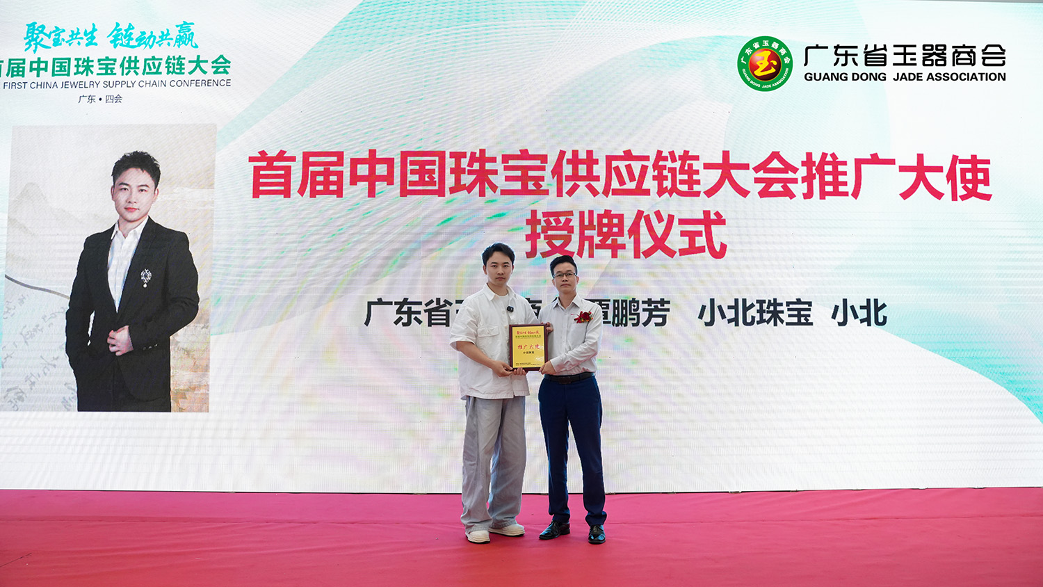 小北珠宝作为首届中国珠宝供应链大会承办单位,对本次活动的成功举行作出了巨大贡献,大会组委会特授予小北珠宝主理人小北作为本次大会的推广大使,希望小北珠宝不单单是一家带货的直播间,同时是一个可以承担起行业责任、社会责任的企业。希望在以后经营中更加注重企业形象,把握产品品质,提高服务水平,更好的为消费者为行业服务。